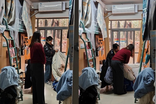1月14日,国际法学院组织老师们到学生宿舍楼,看望寒假留校的学生,送去学院的关怀与温暖。