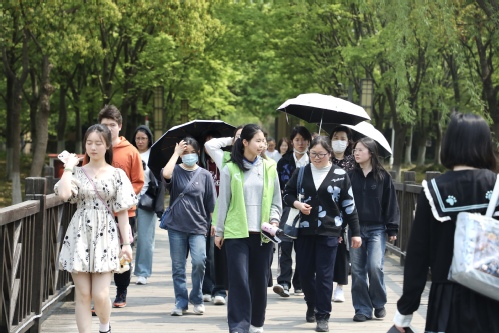 随后,志愿者组织新生与家长进行校园游览,带领新生沉浸式感受校园文化,直观了解校园环境,并结合校史校情展开详细介绍。