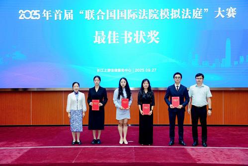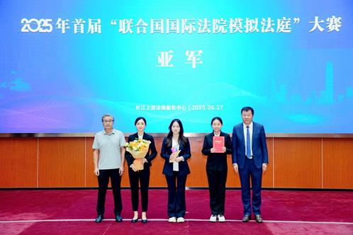 在近日圆满落幕的2025年首届“联合国国际法院模拟法庭”大赛中,我校代表队表现卓越,一举夺得全国团体赛亚军,并荣获最佳书状奖、优秀指导教师奖、优秀组织单位奖,另有1名选手获评优秀辩手。