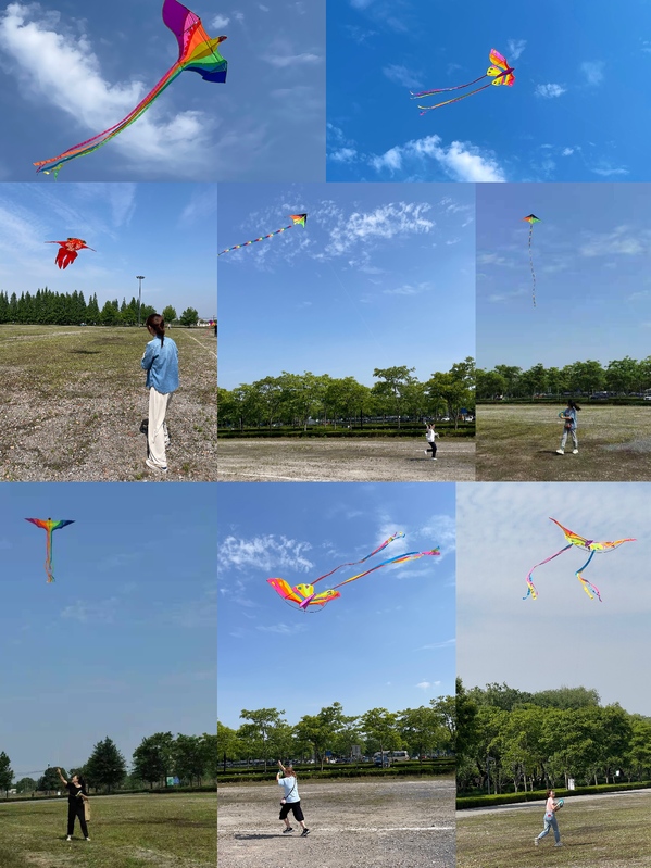 “线系纸鸢,情系中国”活动在园区外有序开展。在全体人员的积极配合下,一只只风筝缓缓升空,每个人心中的爱国情怀仿佛随着风筝飞向蓝天,飞向祖国的怀抱。天空中,一只只载着爱国情怀的风筝在阳光下显得格外耀眼。本次活动也展现了师生们相互协作、团结一致的良好风貌。
