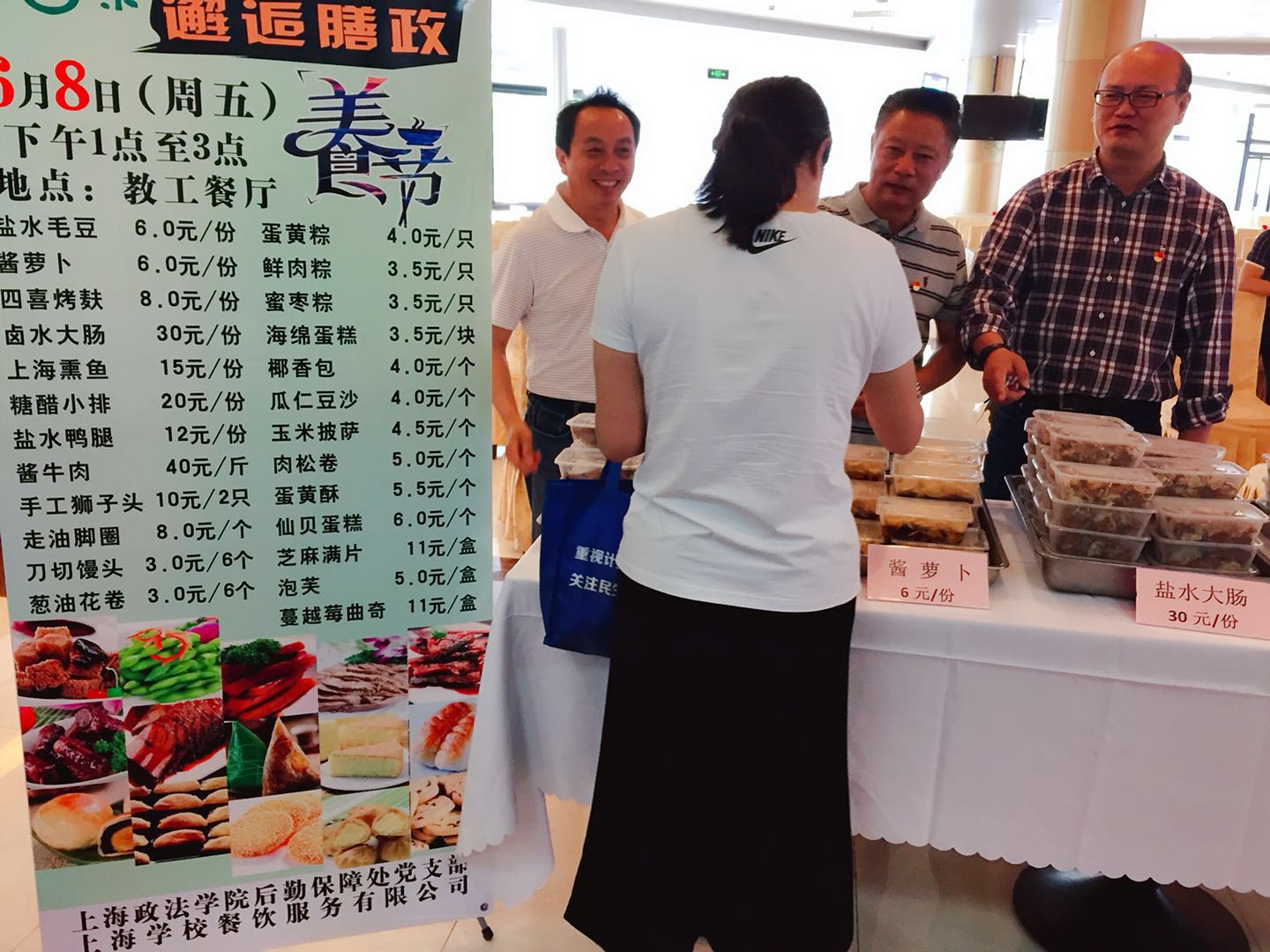 活动开展前期,后勤保障处党支部联合学校教工食堂精心策划,认真准备,制作了种类多样、口味独特、色味俱佳的“上政美食”;活动进行期间,学校教职工老师纷至沓来,争先恐后的对食物进行精挑细选,带着“邂逅”的“上政美食”心满意足的离开了。