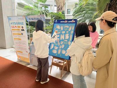 活动设有政策咨询区和互动体验区。在政策咨询区,青浦医保中心及校医务室老师现场解答同学们关于参保流程、异地就医、报销细节等问题咨询。在互动体验区,学生积极踊跃参与趣味游戏,赢取精美“医保JUMP”周边小礼品,边玩边学习医保知识。