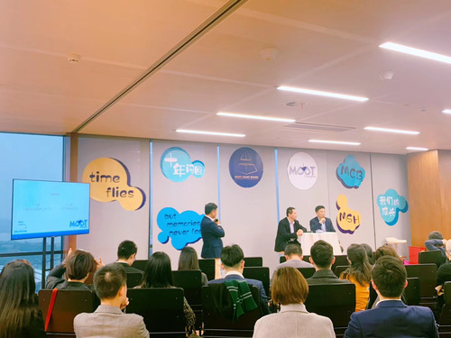 季诺、马屹、俞卫锋等领导也亲临现场,分享“亲历历史”的环节。他们为Moot Shanghai提供了慷慨帮助、热心支持,一路见证Moot Shanghai十年来一路发展为高水准、国际化、广受认可的一场竞赛,更见证了上政学子通过十年如一日的坚持成长到今日,能够自信、积极地在各个国际竞赛中代表中国面孔参赛。他们通过Q&A的形式,肯定了新利18官方客服为推动Moot Shanghai作出的贡献,并表达了对Moot Shanghai、Moot Court Board、上政学子们的祝福与期望。