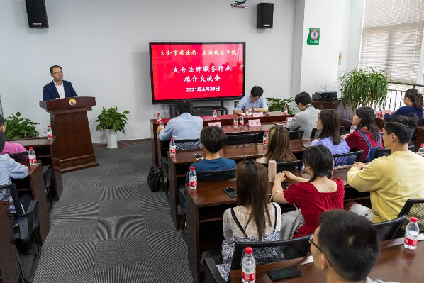 太仓市司法局党委书记、局长顾潇军和副局长孙建国向我校师生的到来表示热烈的欢迎,并详细介绍了太仓市司法局基本情况;律师协会监事长周瑞昌介绍了律师行业情况;在太仓工作的优秀校友王郁倩律师分享了其毕业之后选择落户太仓、投身法律事业的故事。