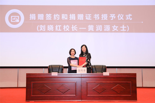 刘晓红感谢黄润源女士的大爱善举。她指出,黄润源女士无私奉献,多年来持续支持教育事业,扶持优秀学子。今天,黄润源女士决定向我校教育发展基金会无偿捐赠400万元,设立专项基金,全力支持我校学科科研发展。这是今年6月我校教育发展基金会正式获批后收到的第一笔捐赠,也是我校办学以来所接受的单笔最高金额的善款。刘晓红强调,近年来,学校不断适应社会发展形势,持续探索符合上政实际和社会需求的人才培养机制、办学治校模式。先后成立了校友会、校务委员会、教育发展基金会,并鼓励二级学院设立理事会,积极搭建平台吸纳广大校友、行业企业和社会各界人士参与办学治校。今天,黄润源女士与上政签约,既是我校合作交流的新成果,也是我校开放办学的新起点。相信在黄润源女士等爱心人士的鼎力相助和社会各界的大力支持下,学校必将凝聚提升内涵、加快发展的强大动力,推进学校高质量发展迈上新台阶。