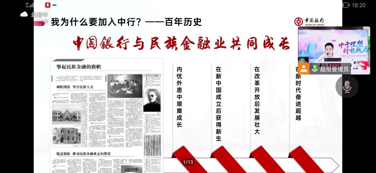 中国银行上海分行人力资源部负责人通过PPT等形式,阐述当前银行业的现状及发展趋势,并对中国银行的悠久历史、企业文化、发展历程,校园招聘岗位、招聘流程,以及薪酬福利保障、人才培养晋升方案等进行了全面的介绍。