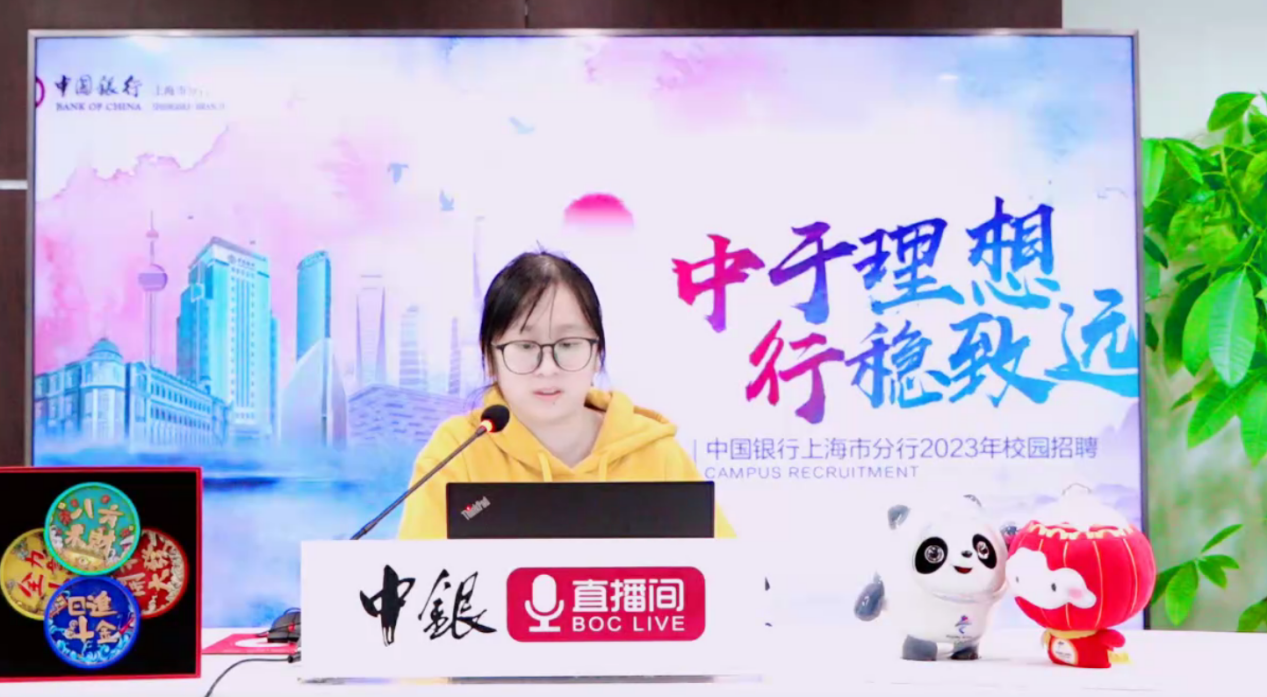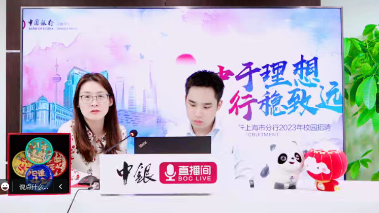 宣讲过程中,中国银行上海分行还为线上同学们准备了神秘盲盒、文创等礼物与同学们互动,宣讲负责人还在线上评论区解答学生疑惑,与有意向的学生进行专项摸排和深入了解。同学们就自己所关心的专业对口、发展平台与机会等问题与银行负责人们展开交流沟通,提出关于就业方面的困惑,并一一得到解答。