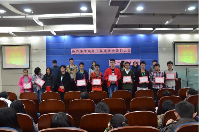 11月24日,经济法学院第十届运动会表彰大会于信教112举行,参加此次会议的有经济法学院团总支书记陶树果老师,辅导员张慧老师、傅瑾老师以及各班级代表。