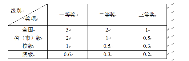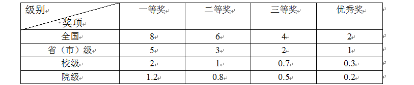 由学校组织参加的各级各类科技学术竞赛,以获奖证书或文件为依据,按以下标准加分:
