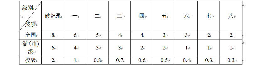 1.学生参加校级以上正规文体赛事(活动),根据获得的名次按下列情况加分: