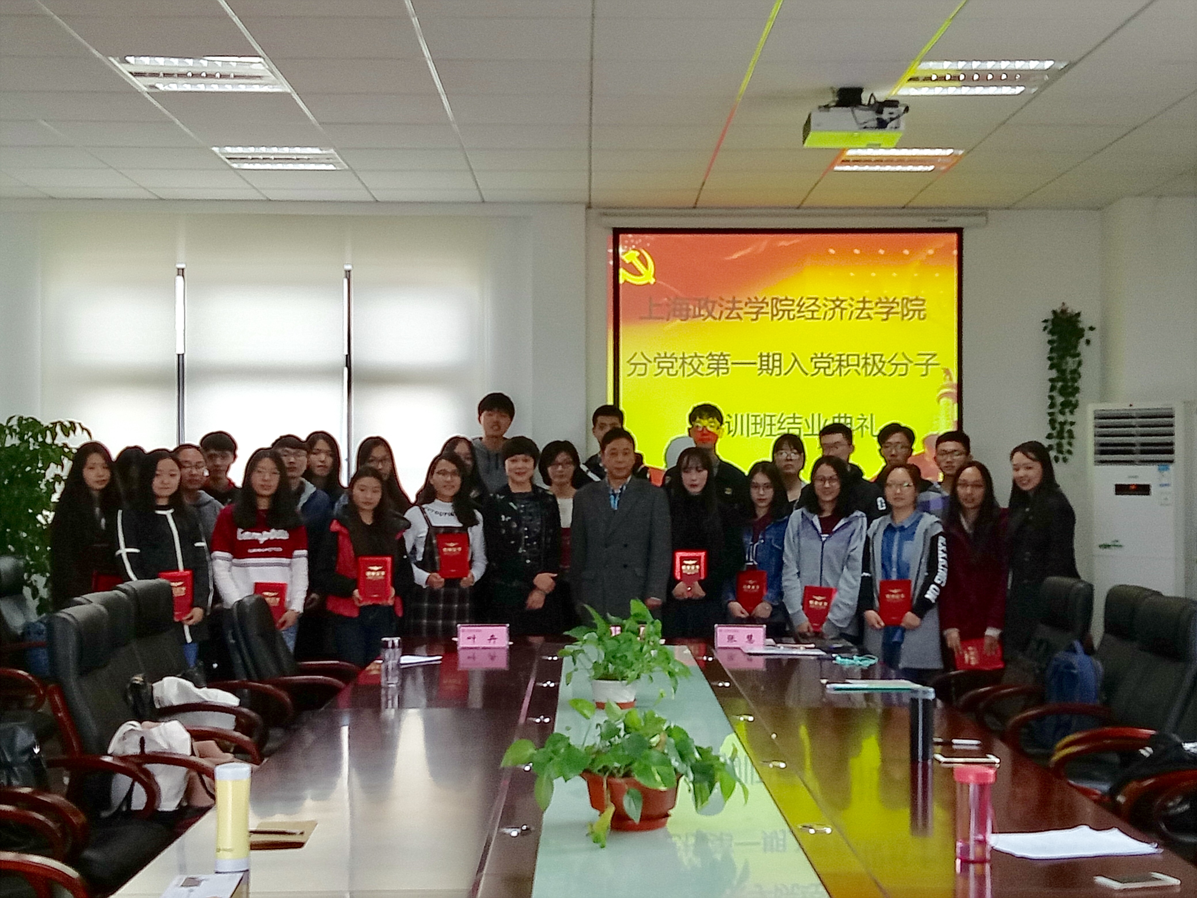 4月10日,经济法学院分党校在B1-201举行了第一期入党积极分子培训班结业典礼。经济法学院党总支书记胡戎恩教授、副书记叶卉老师, 和本期培训班全体学员参加了此次典礼。结业典礼由经济法学院党总支组织员张慧老师主持。