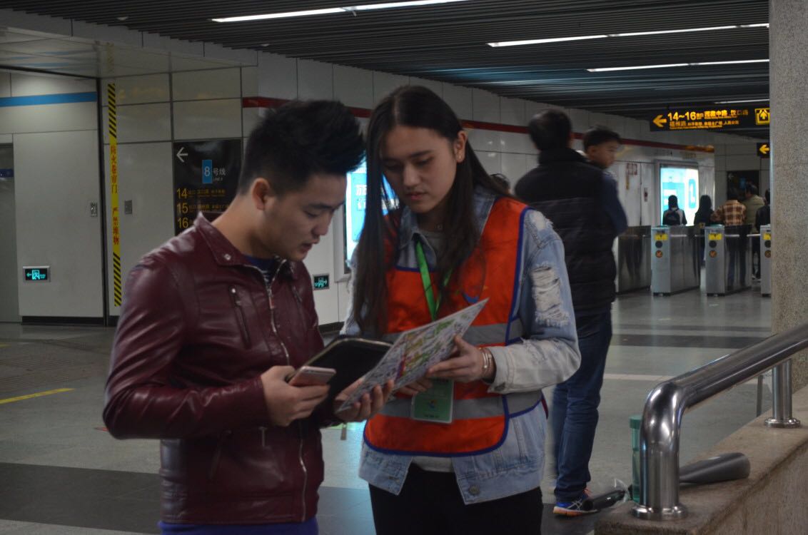 12月10日,经济法学院三名志愿者同学来到人民广场地铁站展开志愿服务,这已经是经济法学院志愿者团队本学期开展的第五次志愿活动。
