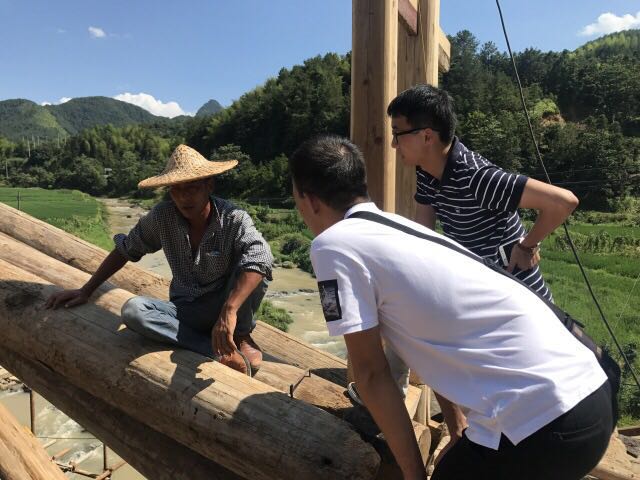 在实地走访中,大家在为廊桥这巨大的历史文化遗产的建筑技艺和文化价值感到赞叹之余,也看到了廊桥保护的现状不容乐观。除了实地考察廊桥和古村落外,成员们还分别采访了泰顺县博物馆张俊馆长和泰顺县非物质文化遗产办公室季海波主任。在访谈中我们了解到廊桥的发展历史和构建工艺,也听出来原住民对廊桥的深厚感情。然而两位专家都提出虽然大家保护廊桥的意识有所提高,但在立法保护方面的意识都有所欠缺,建议政府部门之间也应该加强联动性。