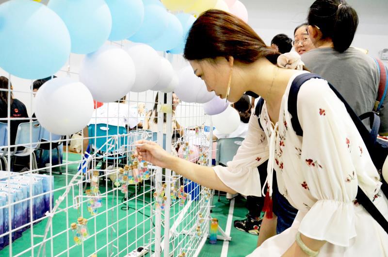 在提交完必备材料之后,学院为新生发放了学生手册、校园卡等校园生活用品以及许愿瓶。新生们纷纷填写自己的愿望塞入许愿瓶中,并悬挂于彩虹墙的下方。小小的墙面寄托了新生们对于大学生活的向往与憧憬。新生完成报道流程后,由学院志愿者带领返回寝室休息。