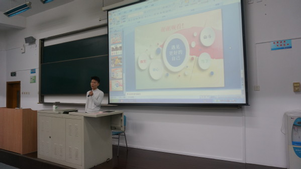 优秀学生党员代表程翔宇与同学们分享了他的学习经历。程翔宇结合自身学习经历,从个人学习、文体活动、社团实践等方面阐述了他对于“知行合一”的深刻理解,阐明了作为一名大学生党员树立和践行社会主义核心价值观的重要性。