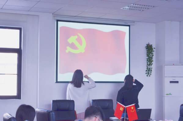 在宣誓仪式上,闻馨举起右手,面向党旗庄严宣誓。