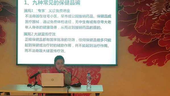 讲座中,张晶晶通过分析当前社会现状、受骗人群中老年人数量等内容,由浅入深分析当前老年人受骗案例的整体特点;周优优紧接着讲解老年人受骗方式,她列举出精心整理的多种诈骗方式,通过现实生活中的真实案例普及防诈骗知识,将诈骗分为六大类,系统讲解诈骗方式,提醒老年人们保护好自身财产安全。王怡冉最后对张晶晶,周优优所讲的内容进行总结,并有针对性地提出老年人防范被骗的具体措施,结合实际,从日常生活,出行旅游,钱财使用等六个方面重点提出建议,希望提高老年人的防范意识。