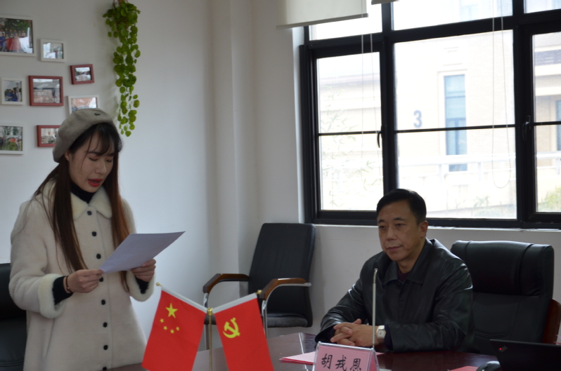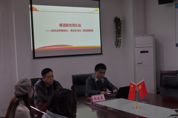 1225日,经济法学院学生党支部入党宣誓仪式在B1-201会议室顺利举行,经济法学院院长、党总支书记胡戎恩、辅导员黄益辉,以及学生党支部201812月新发展预备党员、转正正式党员参与此次宣誓仪式。
