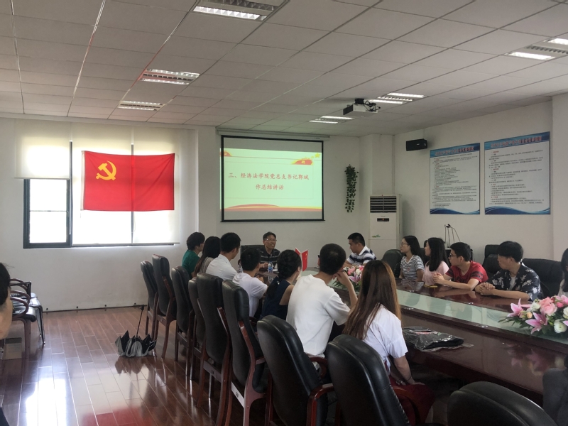 6月28日,经济法学院党总支毕业生党员离校教育大会在B1-201召开。经济法学院党总支书记郭斌、党总支副书记叶卉、辅导员黄益辉以及2019届经济法学院党总支全体毕业生党员出席了会议。