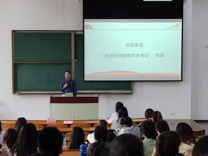 经济法学院党总支书记郭斌作总结讲话。在讲话中,他对入党积极分子们提出了期望:首先,要继续加强理论学习,积极运用马克思主义来思考问题、解决问题,适时改造自己的三观,一心一意跟党走,全心全意为人民服务,树立正确的思想来指导实际行动。第二,要端正入党的动机,在学习中主动接受党组织的教导和考研,想清楚、弄明白“为什么入党”、“入党之后要怎么样做”的问题,并一以贯之,要正确理解并主动接受党组织的教育和考验。近年来,党员发展标准不断提升,我们要从积极分子开始抓起,坚持高要求、严标准,保证党员发展质量和党员的队伍的纯洁性和战斗力,入党积极分子要在平时起到表率作用,时时处处起带头作用,否则决不能入党。第三,要坚持学以致用,时刻发挥先锋模范作用,以实际行动争取早日入党。理论学习是基础,端正入党动机是前提,能够躬身实践是目标,要带头钻研专业、刻苦学习新知识,开阔视野、提升能力;要带头肯吃苦讲奉献、艰苦奋斗;要带头培育和践行社会主义核心价值观,将自身的奋斗奉献和价值体现同实现伟大复兴的中国梦紧密结合起来。最近学校正在开展“不忘初心、牢记使命”主题教育,习近平总书记提出了“守初心、担使命,找差距、抓落实”的总要求,希望各位积极分子学员也要认真地学一学、找一找,以实际行动向党组织靠拢,预祝各位学员能够早日加入中国共产党!