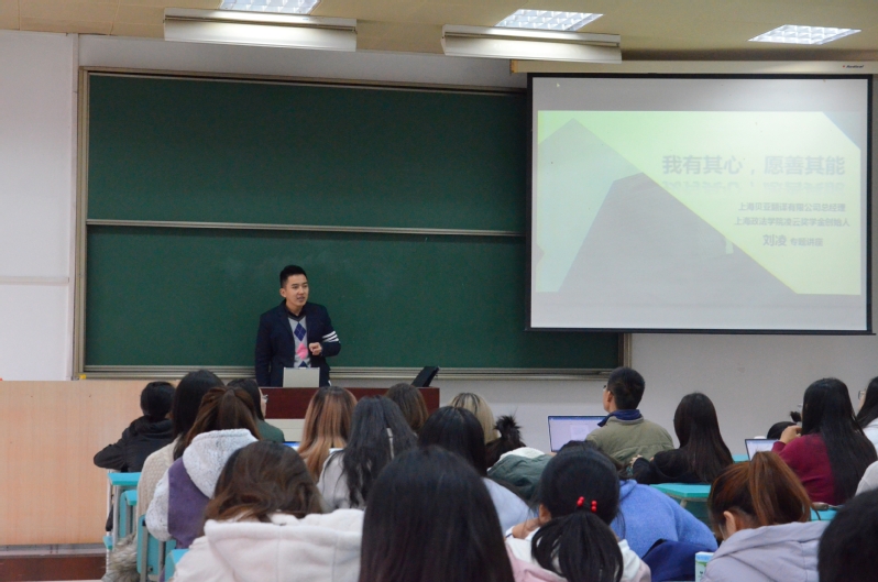 为加强各年级同学与优秀毕业生之间的交流,进一步推进创新创业教育工作,激励广大在校大学生努力学习,励志成才。经济法学院于11月26日下午举行了“我有其心,愿善其能”优秀校友专题讲座,本次讲座由2005级优秀毕业生、上海贝亚翻译有限公司总经理、新利18官方客服凌云奖学金创始人刘凌担任主讲人。