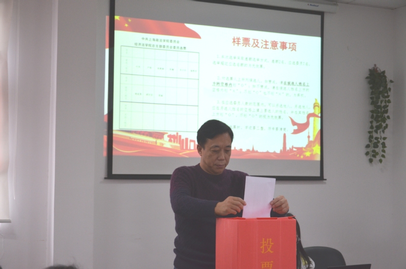 2019年12月24日下午,经济法学院党总支召开全体党员大会进行党总支部委员会换届选举工作。会议由党总支书记郭斌同志主持,经济法学院全体党员参加选举,校换届选举工作领导小组联络员于腾云同志莅临指导。