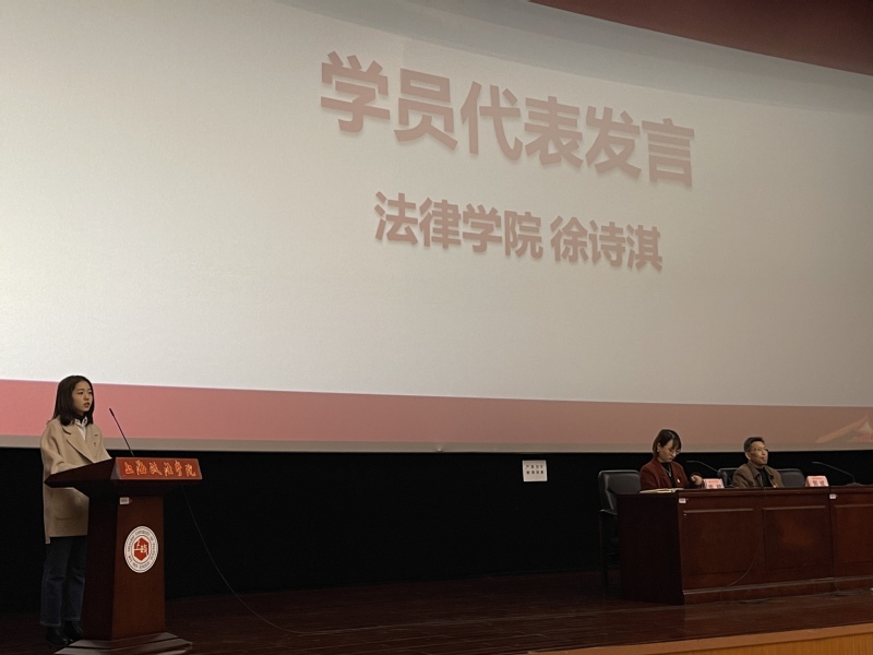 开班式在庄严肃穆的国歌声中开幕,经济法学院学生党支部书记熊婷同志系统讲解了本次培训班的教学内容、学习要求、考核办法等,要求学员端正认识,严肃对待每一次课程。法律学院代表徐诗淇学员发言,表示一定会认真接受培训,严格按照党员标准要求自己,提高理论知识水平和自身党性修养,做一名合格的共产党员;经济法学院代表段其炜学员领誓入党誓词。