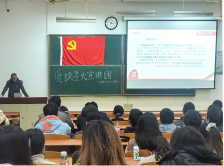 为发挥党员先锋模范作用,引导高年级学生积极备战法考,12月16日下午,上政第10学生党支部在A8-102教室开展了“承榜样之星火 燎未来之原野 ”学业帮扶活动。支部书记颜涵老师,预备党员蔡申逸、沙士博,发展对象徐昱婷,经济法19063和20061全体同学100余人参与此次活动,此次活动由王蕾主持。