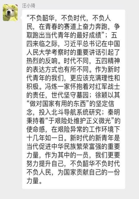 江山代有才人出,各领风骚数百年。我们青年站在时代的交织点上,忆往昔,创今朝。学习完习近平总书记的重要讲话后,吾辈定当不负韶华、不负时代、不负人民。俱往矣,数风流人物,还看今朝。(撰稿:况昕、陈诗涵)