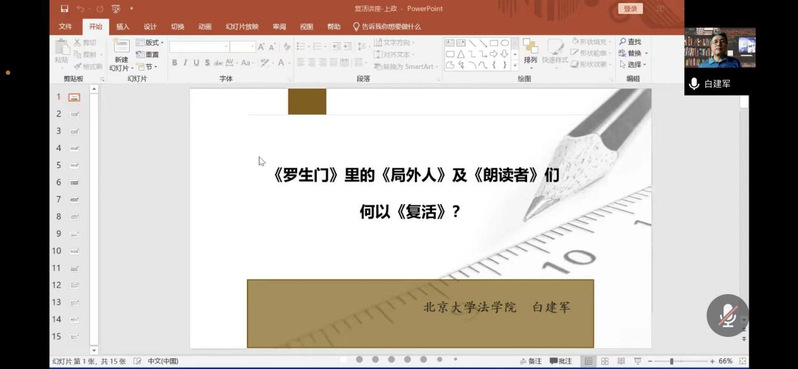7月1日上午,北京大学法学院教授,北京大学实证法学研究中心主任为研究生暑期学校作“《罗生门》里的《局外人》及《朗读者》们何以《复活》”专题讲座。经济法学院院长胡戎恩教授主持讲座。