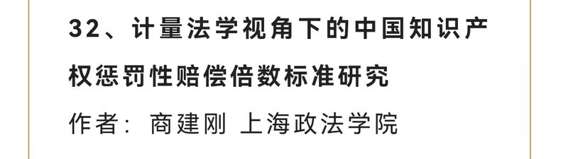 经专家评审,我院商建刚副教授撰写的《计量法学视角下的中国知识产权惩罚性赔偿倍数标准研究》获评“智慧法院创新论文”