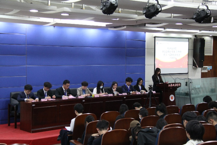 叶卉致开场辞。她以“风雨兼程路,青年敢为先”为题,回顾2023年经济法学院团委、学生会的工作成绩,明晰学代会的义务与职责,并勉励同学们忠实理想,踔厉笃行,不负风华正茂,勇担时代重任。