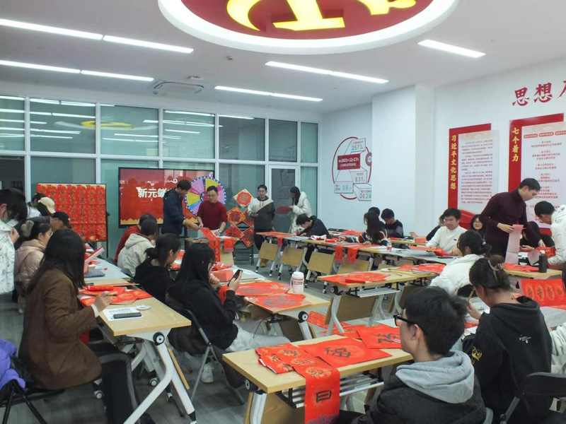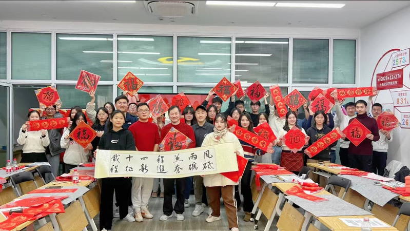 为传承中华优秀传统文化,增强师生的爱国情怀和人文素养,丰富学生的校园文化生活,由经济法学院团委、马克思主义学院团委、政府管理学院团委联合主办的“新元肇启占春风——师生同写春联”活动于2023年12月29日在成德楼学生党建中心顺利开展,师生欢聚,共迎新年。