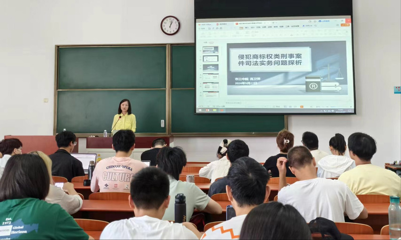 高卫萍以“假冒注册商标罪”的司法认定切入,从“商标性使用的认定”“同一种商品的认定”“相同商标的判断”“正品分装销售行为的刑法定性”四个方面展开授课,从法律依据、裁判标准和实例分析三个层面逐一解析了假冒注册商标罪的司法审理难点,厘清了商标侵权与商标犯罪的关系脉络、拓展了在座师生的商标刑事犯罪司法实践视野。