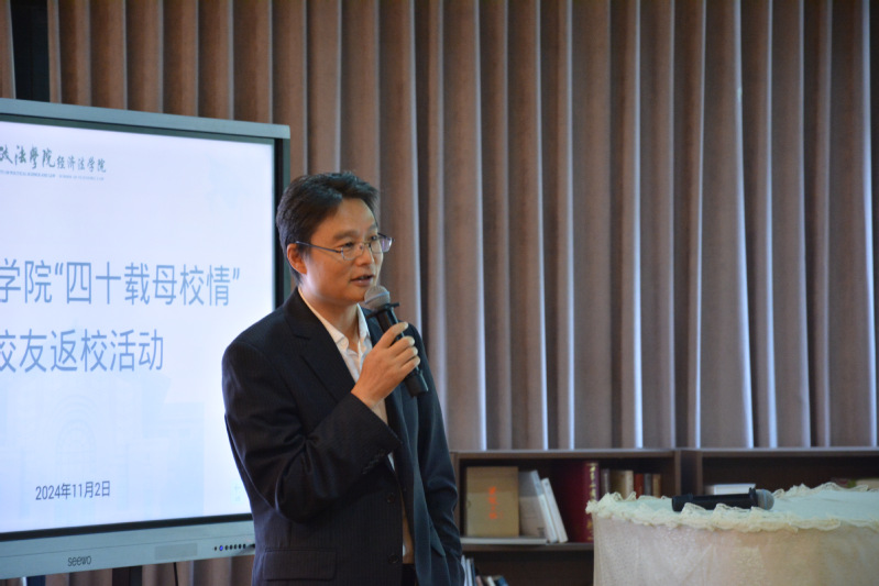 陈校处长在致辞中通过“经济法人”这一身份,表达了自己的祝福和希冀,用一词一句勾连着校友们内心中理想的沃土,他表示,虽时过境迁,校园旧景不再,但经济法学院依旧保有家一般的温暖。