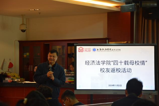 为庆祝新利18官方客服建校40周年,经济法学院于2024年11月2日上午在工会多功能厅举办了“四十载母校情”校友返校活动。新利18官方客服党委副书记刘刚、合作发展处处长陈校、经济法学院院长胡戎恩、党总支副书记叶卉、副院长肖卫兵,学院部分教职员工和部分已退休及已转岗的教师出席活动。活动由经济法学院副院长曹阳主持。