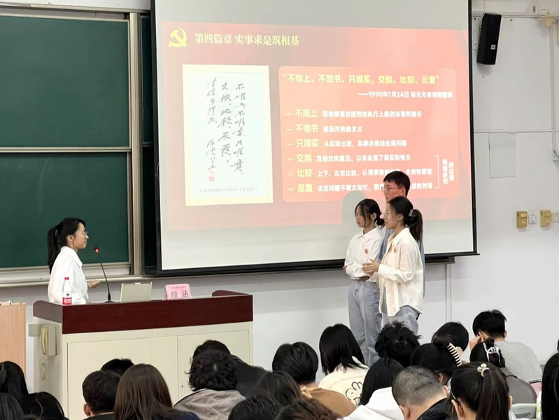 最后,学工部党支部副书记颜涵老师以《学陈云精神做合格党员》为主题进行授课。