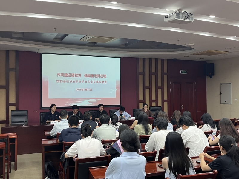 为深入贯彻中央八项规定精神学习教育,进一步加强作风建设,锤炼党性修养,坚定理想信念,助力毕业生党员勇敢踏上未来新征程。2025年6月11日下午,经济法学院在汇知楼107会议室召开毕业生党员离校教育大会暨政治生日主题活动。学院党总支书记叶卉、学生党支部书记及全体毕业生党员参会。会议由组织员刘逸君主持。叶卉首先对2025届全体毕业生党员顺利毕业表示祝贺。接着,叶卉围绕深入贯彻中央八项规定精神作“筑牢作风之基,永葆初心本色”的专题党课,带领毕业生党员辨析中央八项规定与中央八项规定精神的区别与联系,从全局层面、学生层面引导毕业生党员深入贯彻中央八项规定精神,做到内化于心,外化于行,并对毕业生党员提出四点期望:一是要始终怀揣家国情怀的热忱面对未来人生的苦与乐;二是要始终秉持公平正义的信念面对未来人生的是与非;三是要始终抱有遇事淡然的心态从容面对人生的得与失;四是始终保持学习知识的能力面对未来人生的进与退。