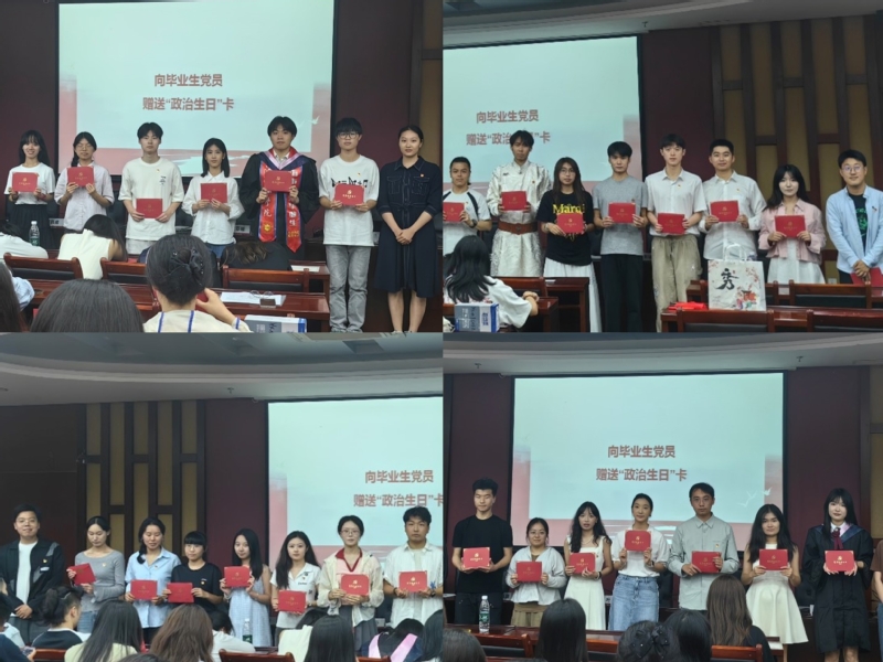 学生党支部书记分别向毕业生党员赠予“政治生日”纪念卡,寄语毕业生党员进一步强化身份意识、宗旨意识和责任意识,铭记政治生命起点,永葆党员先进本色。