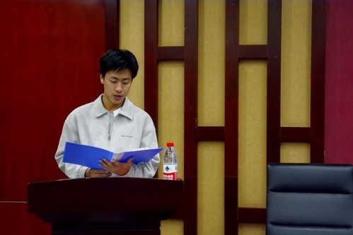 学生代表朱奇嘉在发言中感谢学校和学院提供的发展平台。他表示校外实务导师的指导有助于学生拓宽视野、结合理论与实践,并对职业发展有更清晰的认识,并号召同学们珍惜学习机会,努力提升专业技能,不负学校和导师的期望。