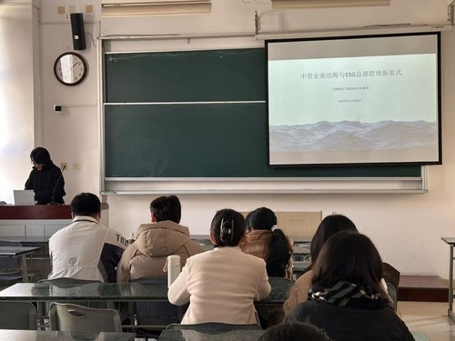 初冬时节,智汇经法。2025年12月4日上午,经济法学院ESG系列讲座在新利18官方客服顺利举行。本次讲座由上海简宽律师事务所合伙人赵江珍律师主讲,经济法学院副教授杨彤丹主持,以“ESG框架下的公司治理实践”为主题,围绕中资企业出海与ESG总部管理新范式展开讨论。