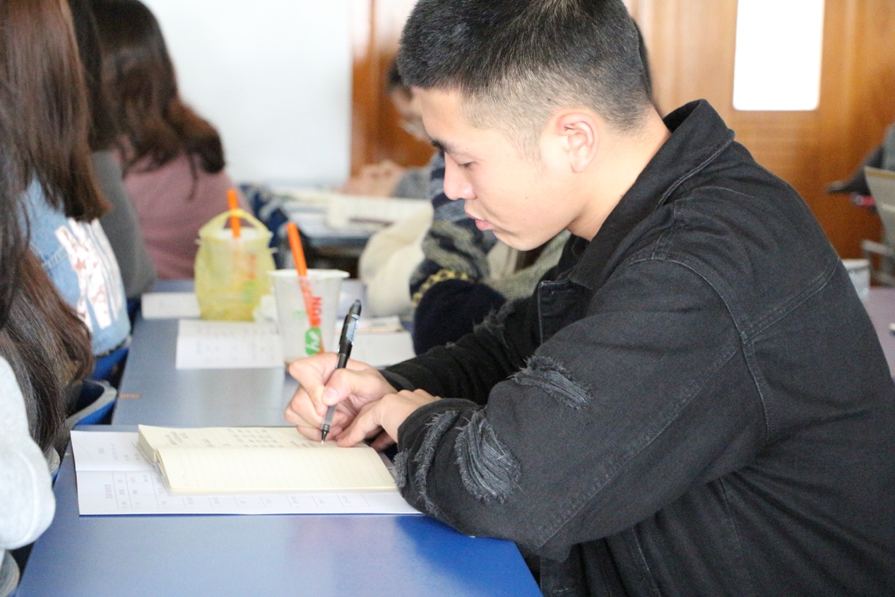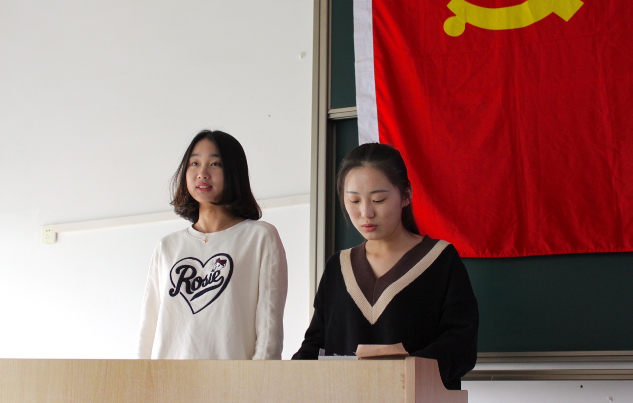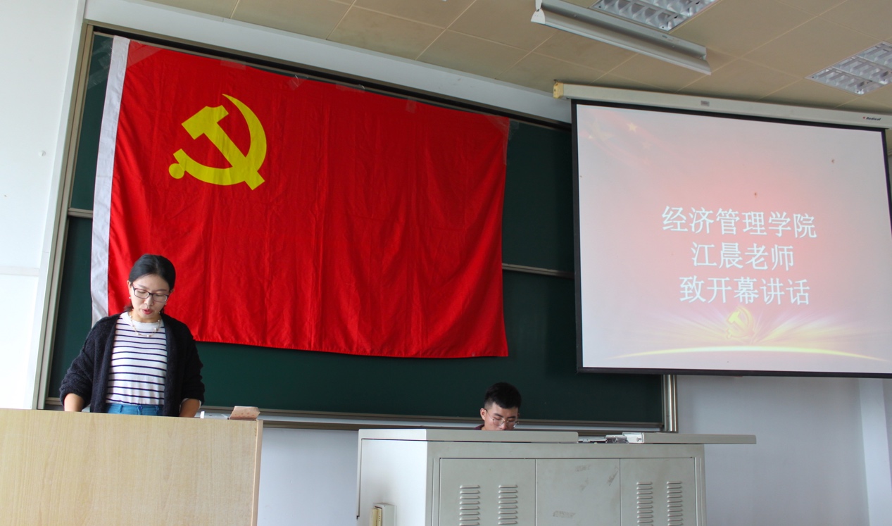 2017年10月17日下午,经济管理学院入党积极分子培训班开班典礼暨第一次授课于主教304A顺利召开。本次会议由庞时雨、吕品雯同学主持,党总支副书记江晨老师,经管组织员徐璐老师,优秀研究生代表常怡蓉同学出席了本次活动。现场气氛热烈,座无虚席。