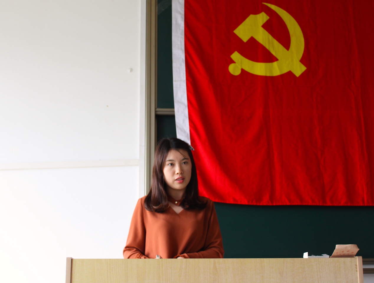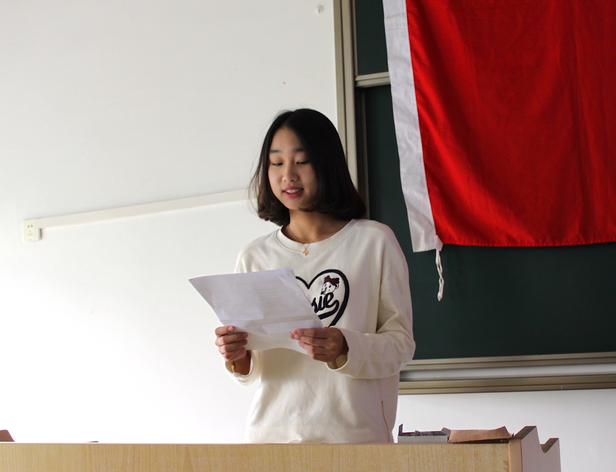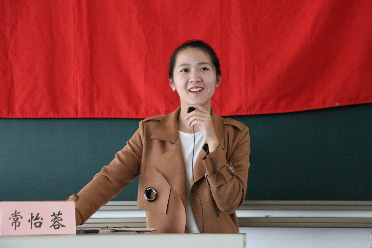 短暂休息过后,由研究生优秀代表常怡蓉学姐上台讲授入党第一课。她以“提高党性修养,做一名合格党员——谈一名学生党员的自我完善道路”为主题,先介绍了自我入党经验与党中担任职责,随后以一个益智游戏来缓解气氛加深了解,并表示想让同学们在其中学习到在未来的生活的学习中要懂得抓住关键与学会倾听,然后提出阅读学习的重要性和以自身经验为例的成为党员的自我要求。现场气氛活跃,反响热烈。