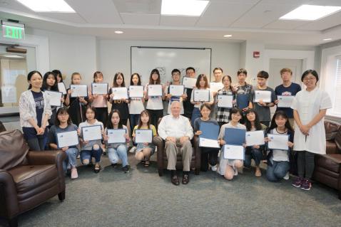 76日早上是我们在CNU的最后一节课了,大家都十分舍不得这里的所有人以及这里的校园。最后一节课是语言文化课,我们进行了一个小游戏,在第一轮我就被老师叫到了名字,这个游戏是根据我们昨天课上写的一个童年故事。老师将我们分为三组,每组抽一个人上去,老师会讲一个故事,这个故事是我们三个人其中一个的,大家进行提问来猜测故事的主人。老师当时讲述的故事并不是我的,但是我们需要扰乱视听只能假装是自己的,我也成功地混淆了他们的选择为我们组赢得一分。最后我们都拿到了自己的证书,和授课老师等一起合影留念,我也请Smith老师为我写了一份寄语。