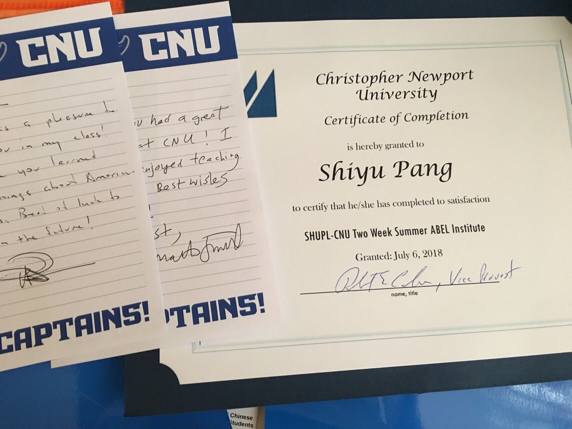在CNU学习的两周已经结束了,首先,感谢我的父母,感谢他们的支持和赞助.其次,感谢我的学校及老师,给我提供了这个学习机会和这段时间里无微不至的照顾.最后,感谢本次访学团的西瓜小组和其他小组全部成员,感谢你们在访学中的合作与帮助,谢谢你们.