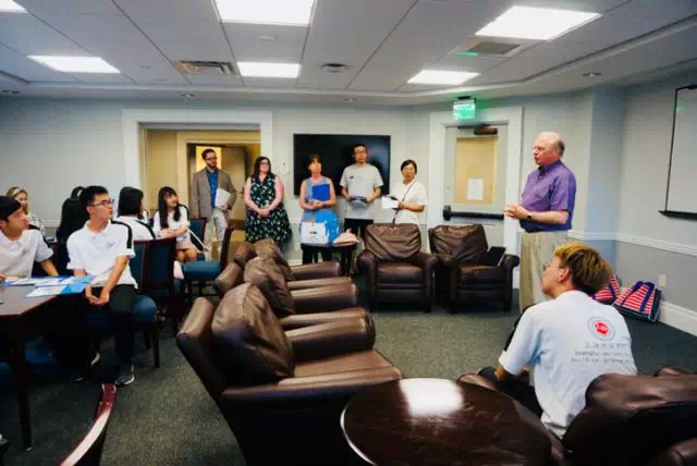 语言文化课的老师Prof. Jon Smith是唯一每天都给我们上课的老师,他用有趣的视频和游戏让我们了解中美语言和文化上的一些差异,经常会让我们分小组一起讨论互动。这样的课堂模式,让我们渐渐地更加融入课堂,并可以轻松地感受和理解到到各方面的差异。
