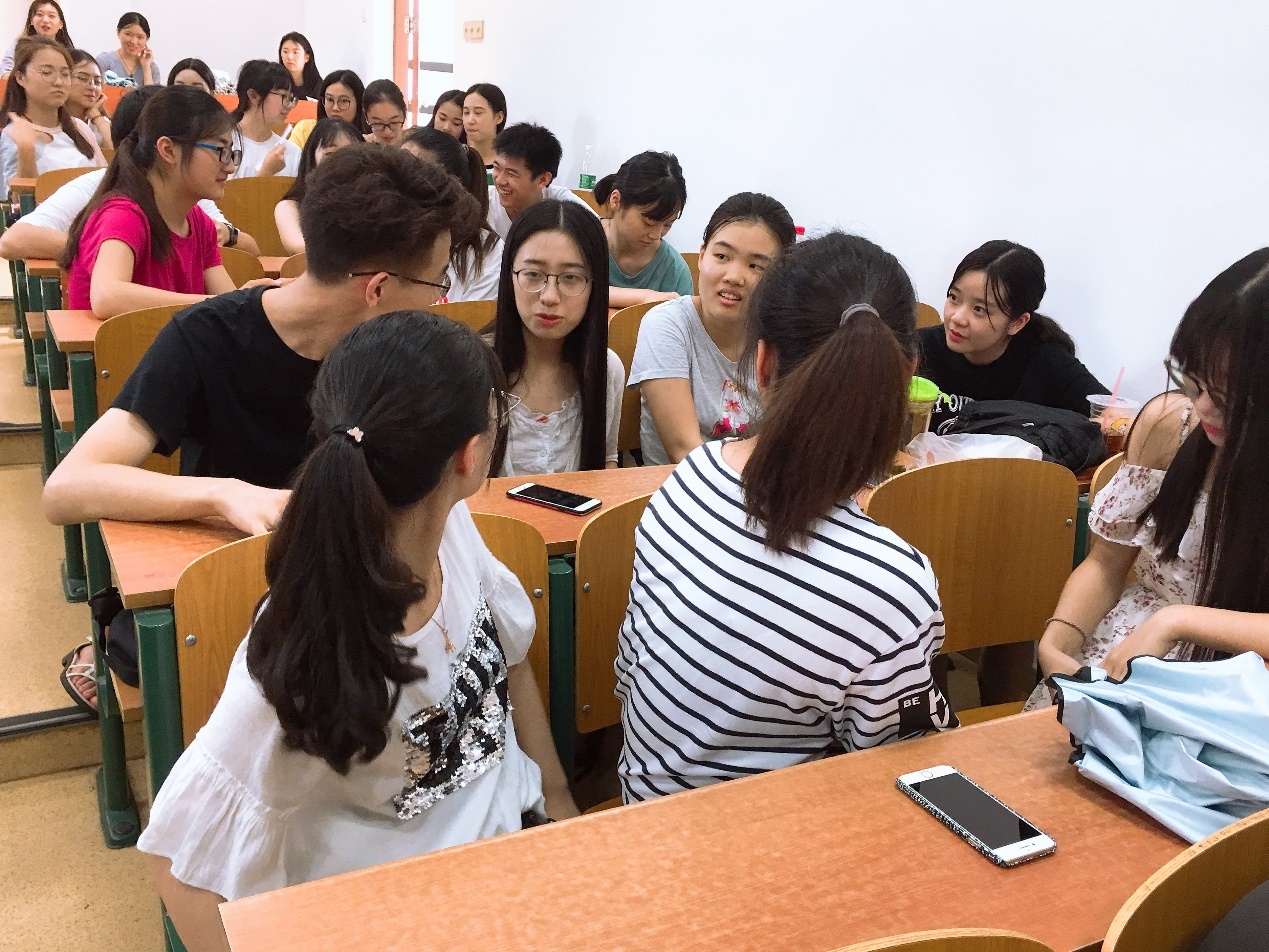 随后,在进行了一段时间的热烈讨论后,由各组代表轮流上台发言。同学们分别就“共享”这一关键词提出了共享经济、共享经验和共享资源等设想,同时也表示共享的生活方式会来带节约社会成本和提高利用效率等优点,另外,也有不少同学表示在共享未来的设想下,还伴随着个人素质和社会认同低下等问题仍待解决。同学们全程积极参与,各抒己见,交流融洽。