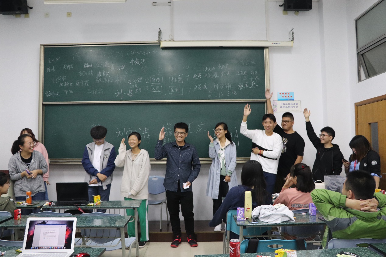 2018年10月14日晚上六点,经济管理学院学生党建中心举办的以“敢于破冰,积极主动,团结奋进,开拓创新”为主题的团建活动在主教119A 正式展开。本次活动由经管党建中心徐卓然、范子晴同学主持,党建干事全员参与,现场气氛热烈,座无虚席。