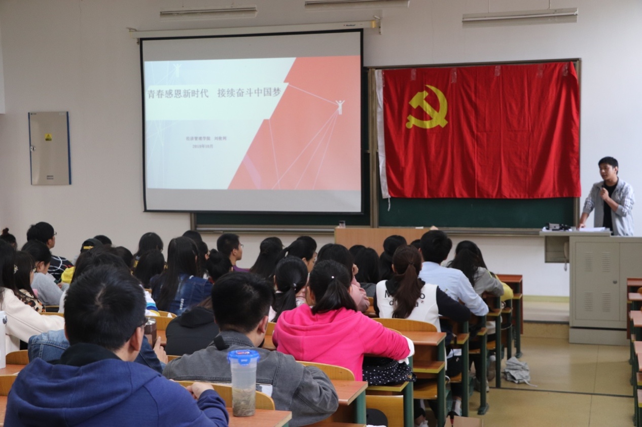 2018年10月23日下午1点,经济管理学院第26期入党积极分子培训班第二次授课在A 8—101教室正式展开。本次课程由经济管理学院刘俊利老师主讲,经济管理学院第26期全体入党积极分子参与。现场气氛严谨,同学们态度端正,学习认真。