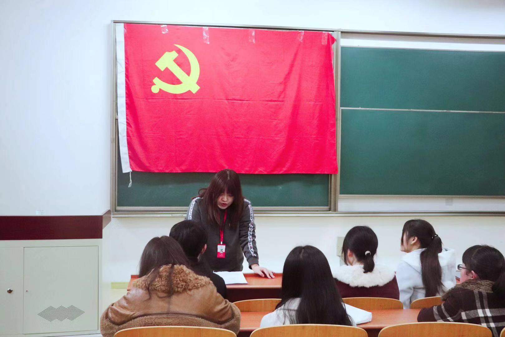 活动伊始,主持人徐卓然说明了入党资格,阐述了入党流程和填写申请书的具体格式。同学们均认真听讲。